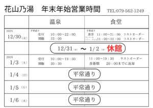 花山乃湯年末年始の営業